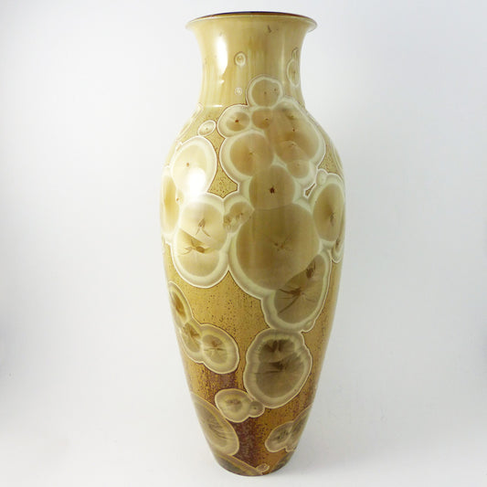 He is best known for his mastery of the distinctive crystalline glazing technique. This is a process where the zincbearing glaze changes during firing, developing beautiful crystal forms resembling frost blooms. With this type of glaze, the kiln temperature must be carefully controlled to allow the crystals to develop. This slow, complex process results in one-of-a-kind pieces – no two works will ever be the same!