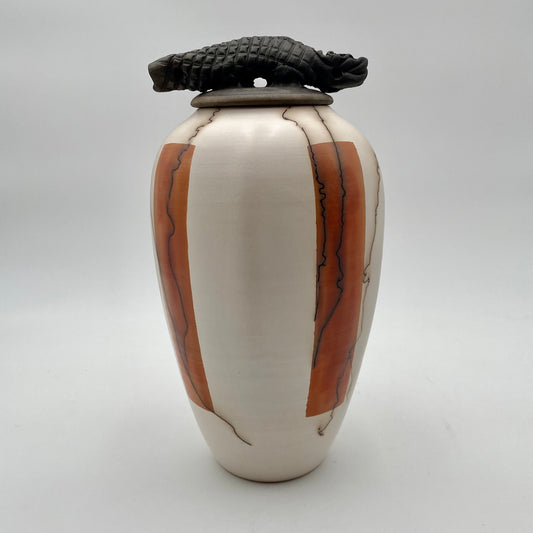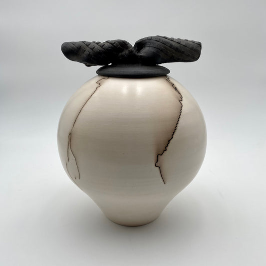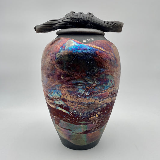 Shu-Chen is originally from Taiwan; she lives and works in Hamilton, Ontario. She is primarily self-taught and works with clay, currently in the Raku style. Shu-Chen has participated in numerous exhibitions and won the award of excellence from the Burlington Potter's Guild in 2003. She has received commissions and her work is in permanent collections. In 2008, her raku work was purchased by the Hamilton Airport and is on display at the International Arrival Hall. Shu-Chen values the self-realization involved in working with clay. She states that "working with clay has brought (her) much joy in life". She considers her unique ceramic works as her "diary written in clay" and considers it her goal to "pursue excellence through her art, and that is (her) offering to the people". Raku pieces are strictly ornamental and are not food-safe.